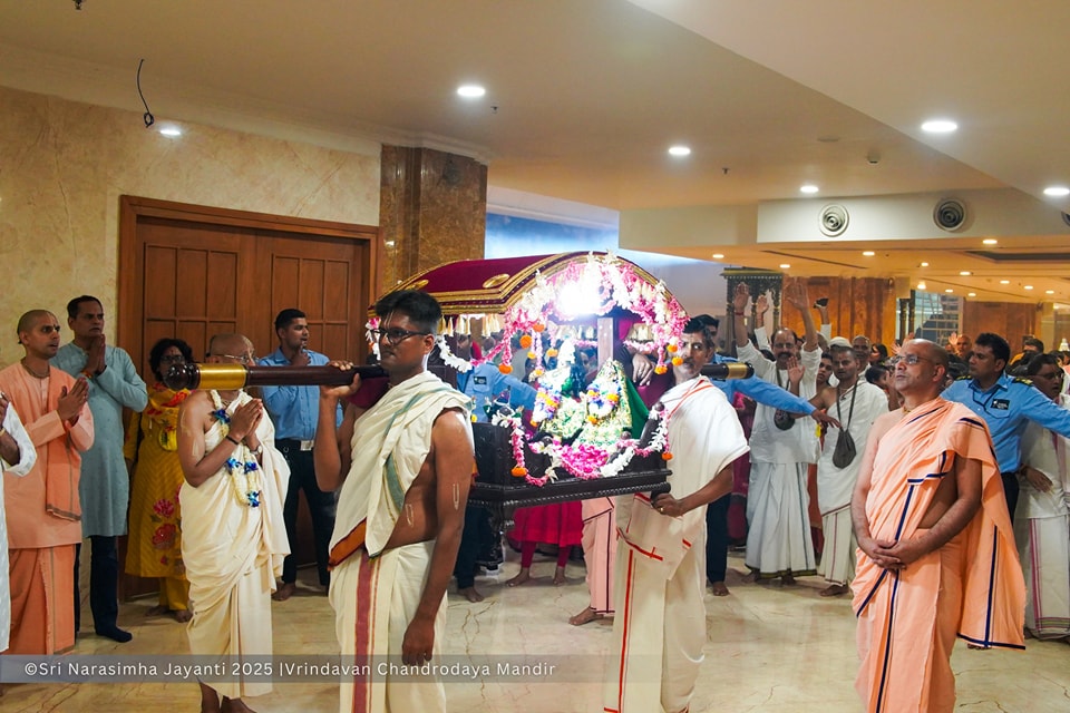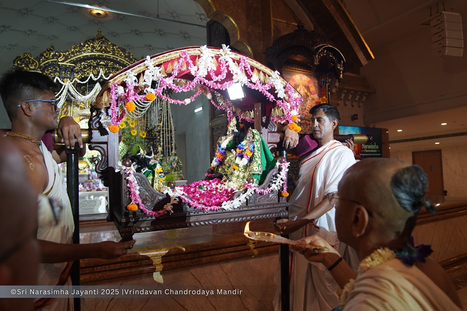 Sri Narasimha Chaturdashi festival was celebrated today at the Vrindavan Chandrodaya Mandir.