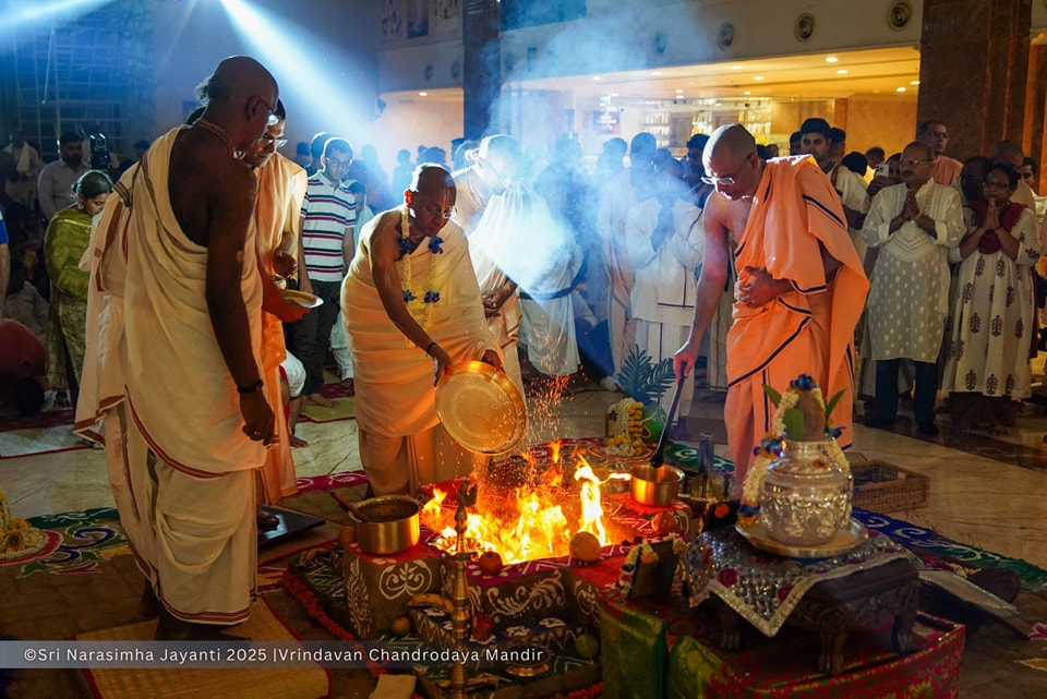 The festival included a grand Narasimha Havan accompanied by Vedic chants, Pravachan by Sri Chanchalapathi Dasa, President of Vrindavan Chandrodaya Mandir, special Arati, and Pallaki Utsav.