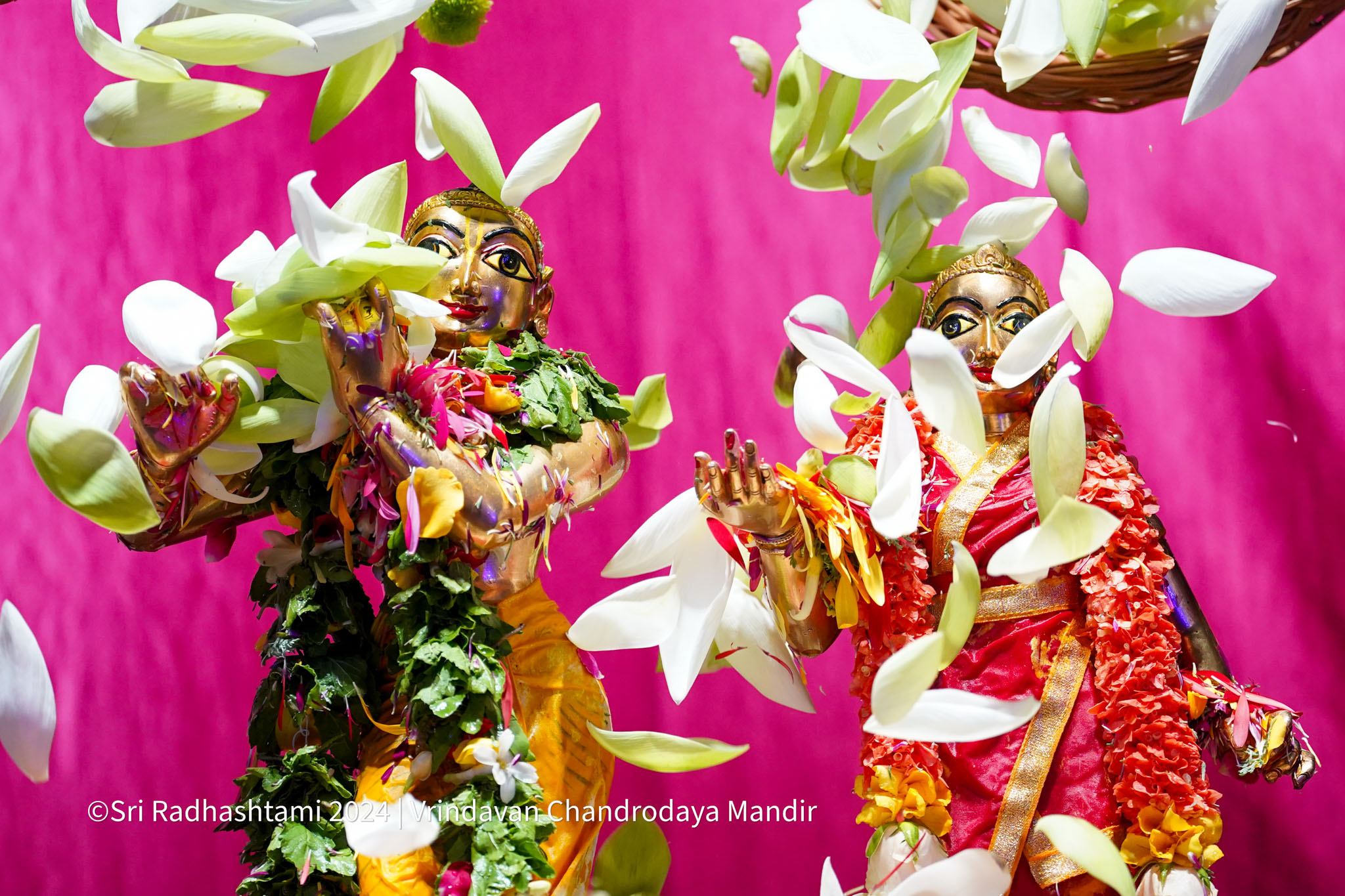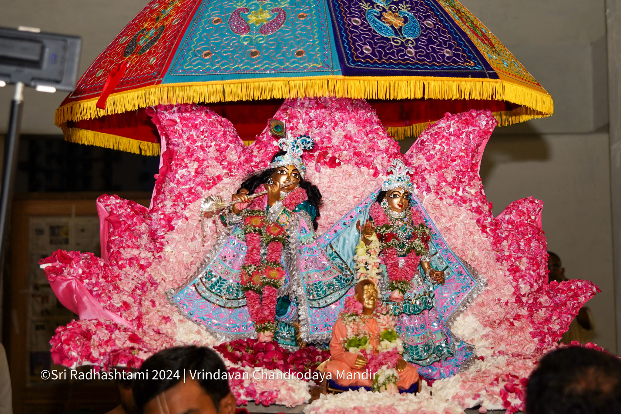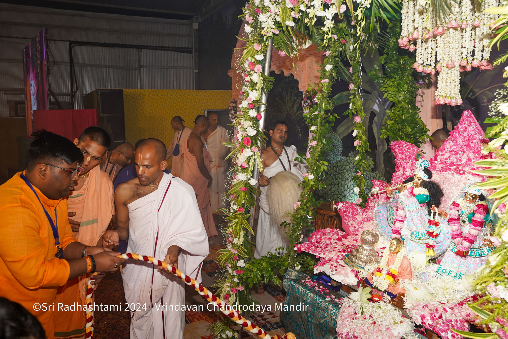 Sri Radhastami, the auspicious appearance day of Srimati Radharani, was celebrated with great joy at Vrindavan Chandrodaya Mandir. The Utsava Deities of Sri Radha Vrindavanchandra received an elaborate abhishek and arati accompanied by Vedic chants and kirtans.