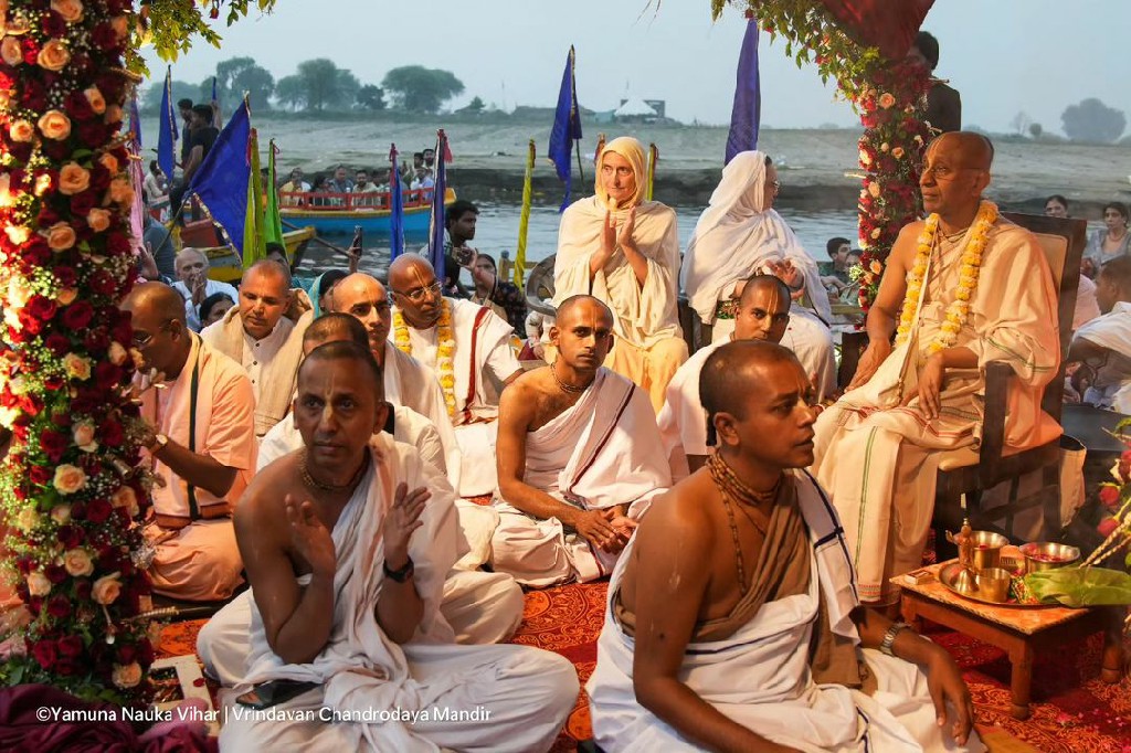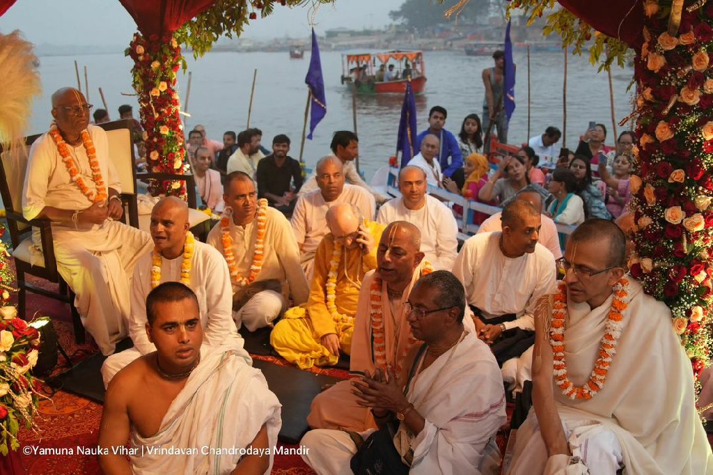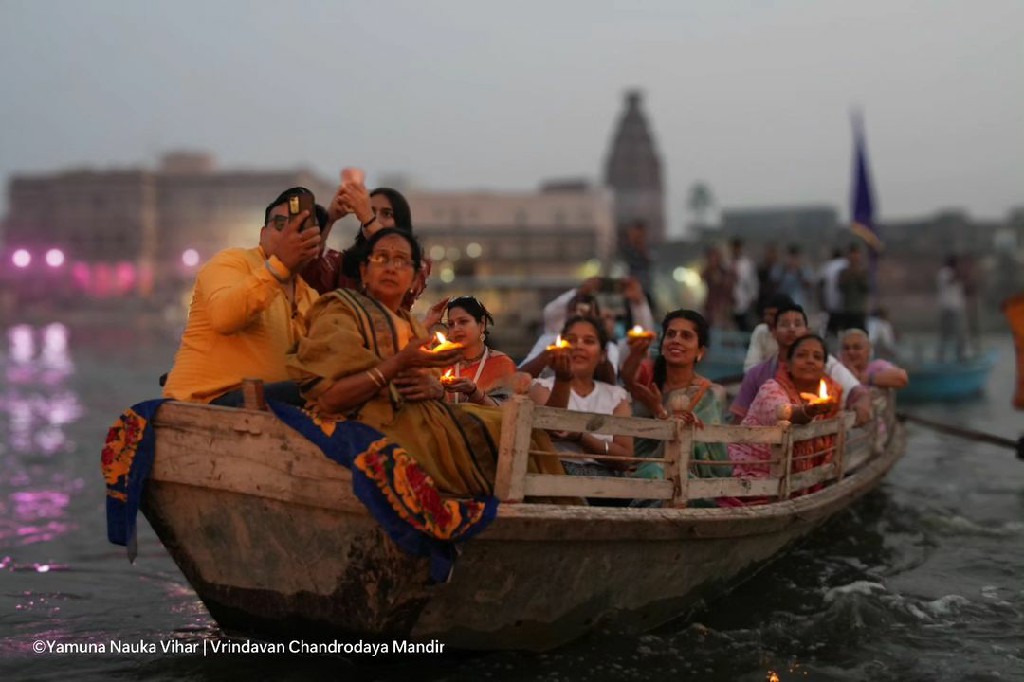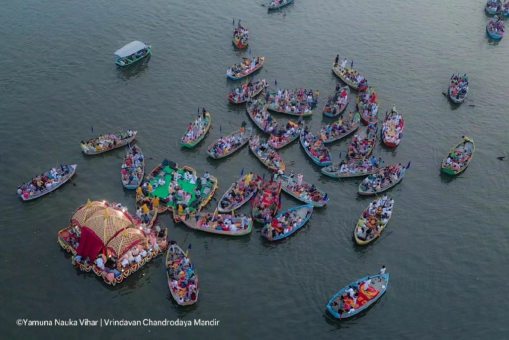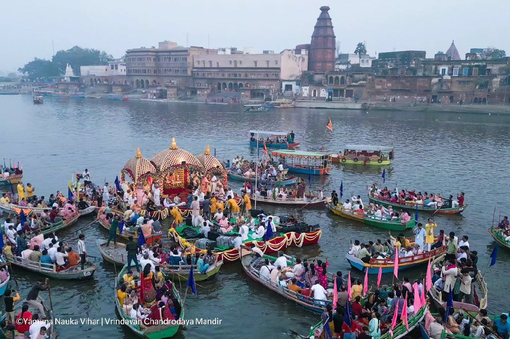 The Yamuna Nauka Vihar festival was celebrated by Vrindavan Chandrodaya Mandir today in Yamuna Ji.